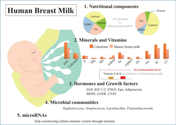 Immuunstoffen: naast witte bloedcellen en oligosacchariden bevat moedermelk tal van andere immuunstoffen zoals fagocyten, immunoglobulinen (antilichamen), lymfocyten, geactiveerde plasmaproteïnen, lysozyme, lactoferrine, lactoperoxidase, fibronectine, glycoproteïnen, antimicrobiële stoffen